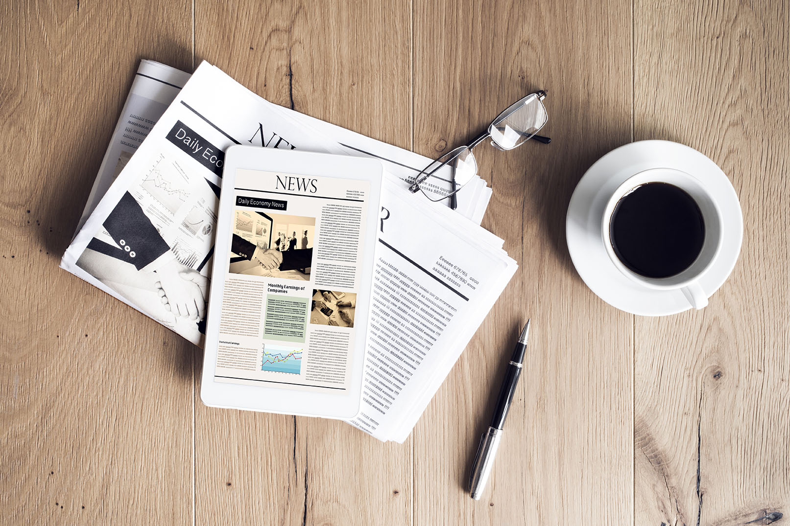 Home / Home / Newspaper with tablet on wooden table